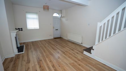 This three-bed, mid terrace property comprises: open plan living room/dining room with feature fireplace, galley style kitchen, main bathroom with bath and electric shower.